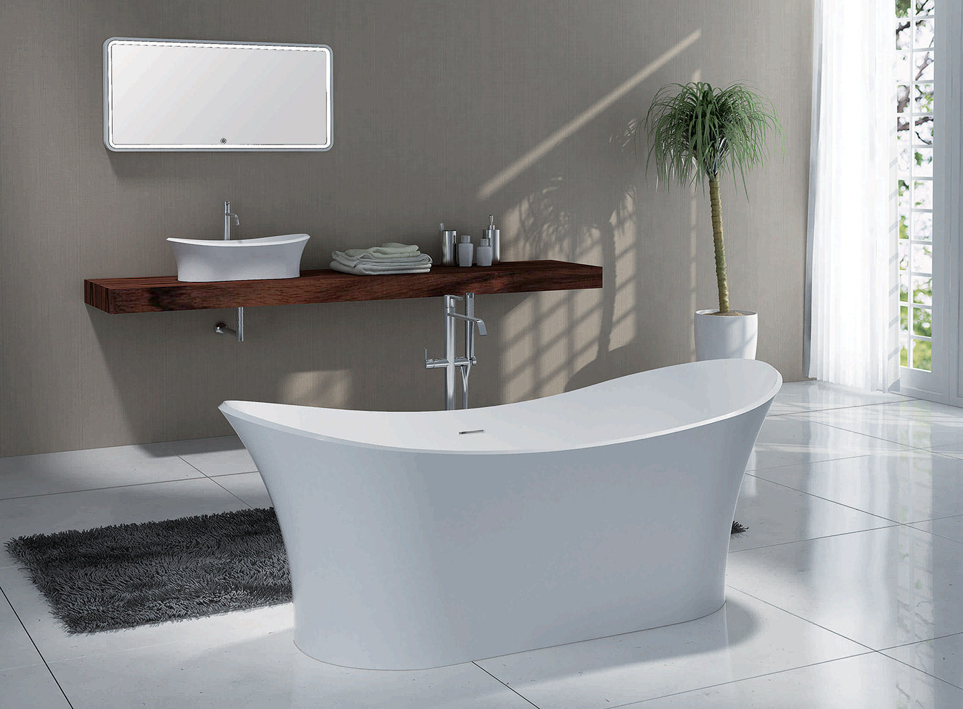 by Pietra Bianca, a classic bath shape.